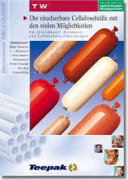 2-page product brochures for a sausage casing manufacturer (front pages).