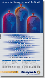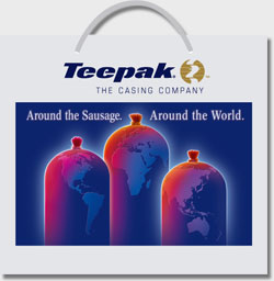 Advertisement and carrier bag for a sausage casing manufacturer.